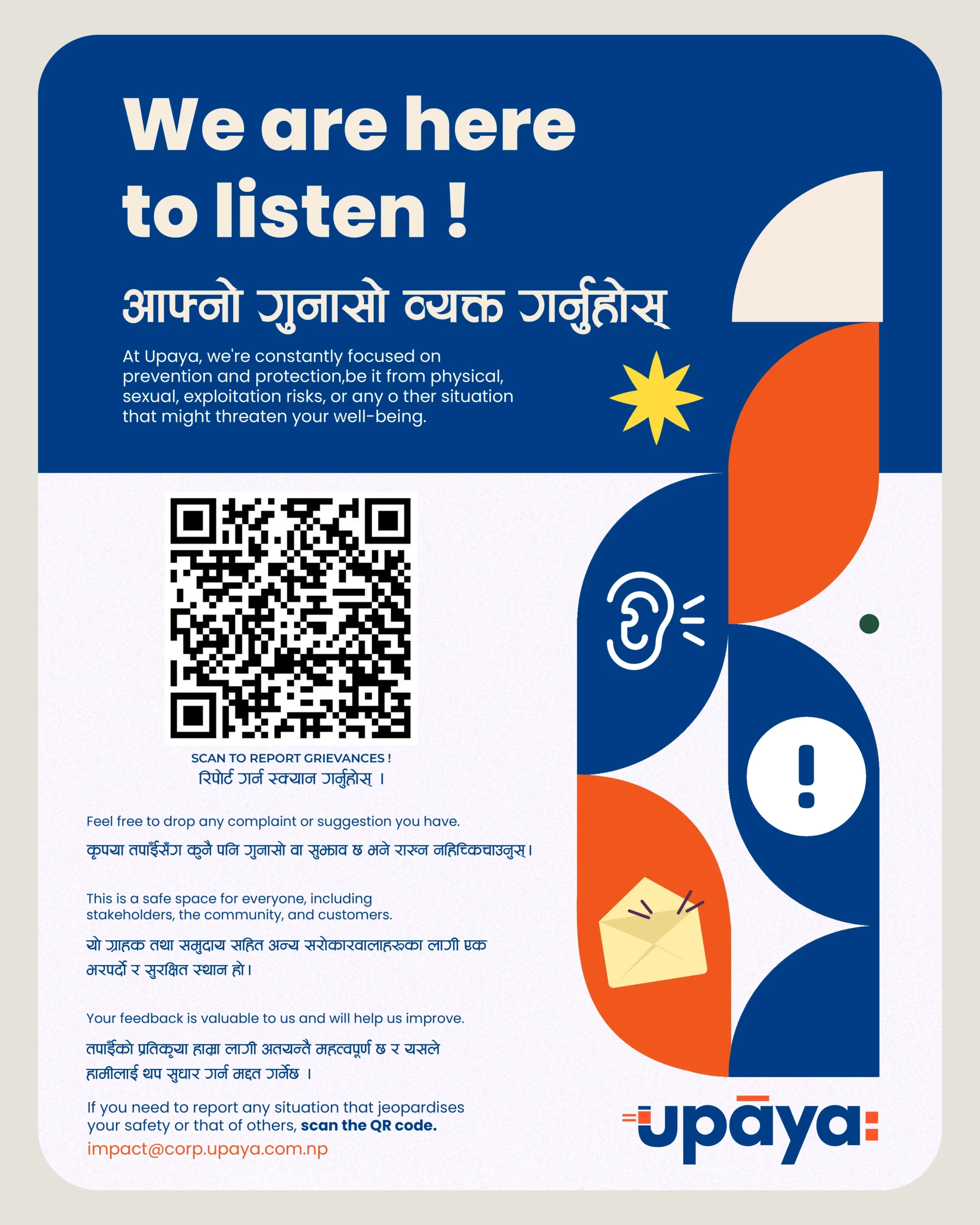 At Upaya, we prioritize effective grievance management to ensure the satisfaction of all stakeholders impacted by our activities. Through our Grievance Management System, any stakeholder or aggrieved party can easily lodge a complain.